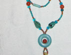 Turquoise, Olive Jade, Glass Beads of various sizes and Toggle Clasp.
